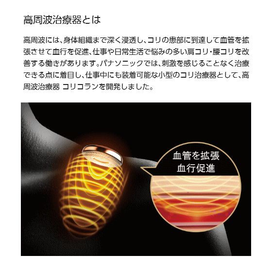 ◆商品について◆ ・高周波で血管拡張・血行促進、 肩・腰コリ改善 高周波が幹部に浸透 血管を広げ血行を促進 肩コリ腰コリを改善 ・長時間つけても気にならない、1日ずっとコリ治療 コードを気にせず、装着したまま仕事ができます。