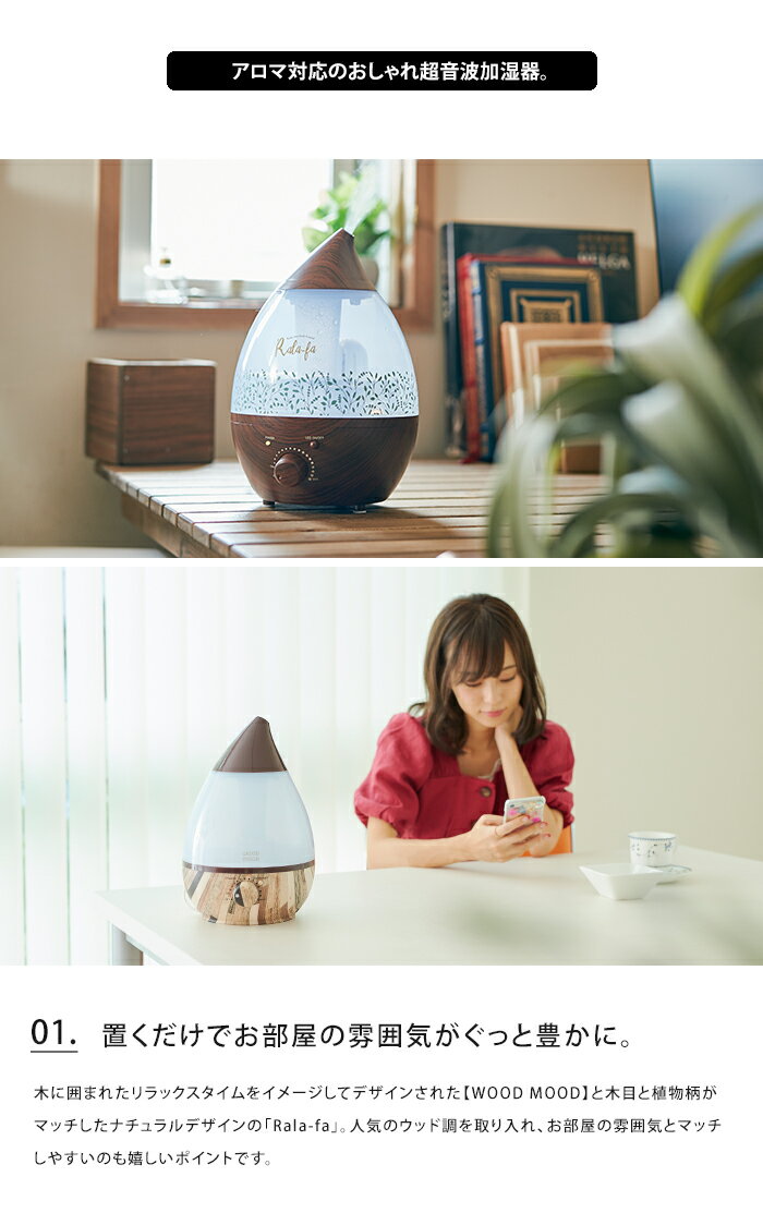 商品スペック 特長 木に囲まれたリラックスタイムをイメージしてデザインされた【WOOD MOOD】と木目と植物柄が マッチしたナチュラルデザインの【Rala-fa】。